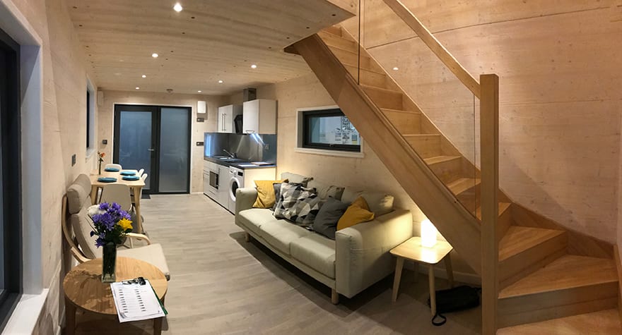 The one to two-bedroom homes are factory-built to higher standards than conventional houses, being super insulated, triple glazed, with heat recovery ventilation, low-carbon technology and lots of daylight.